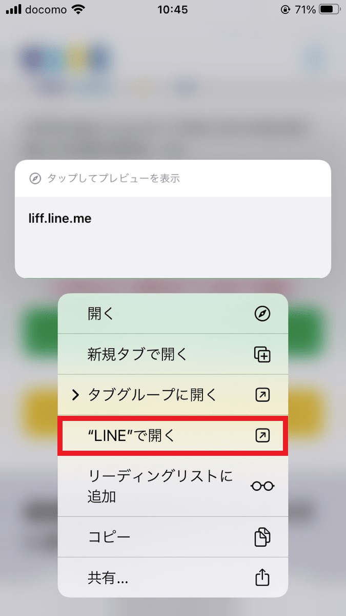 友だち追加ボタンを長押し、「"LINE"で開く」をタップしてください。